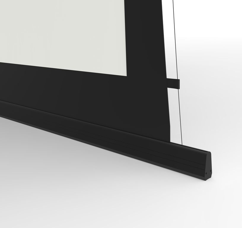 Особенностью данной серии проекционных экранов является увеличенный экстрадроп (верхнее черное поле и вытяжные тросы) – 5 метров.