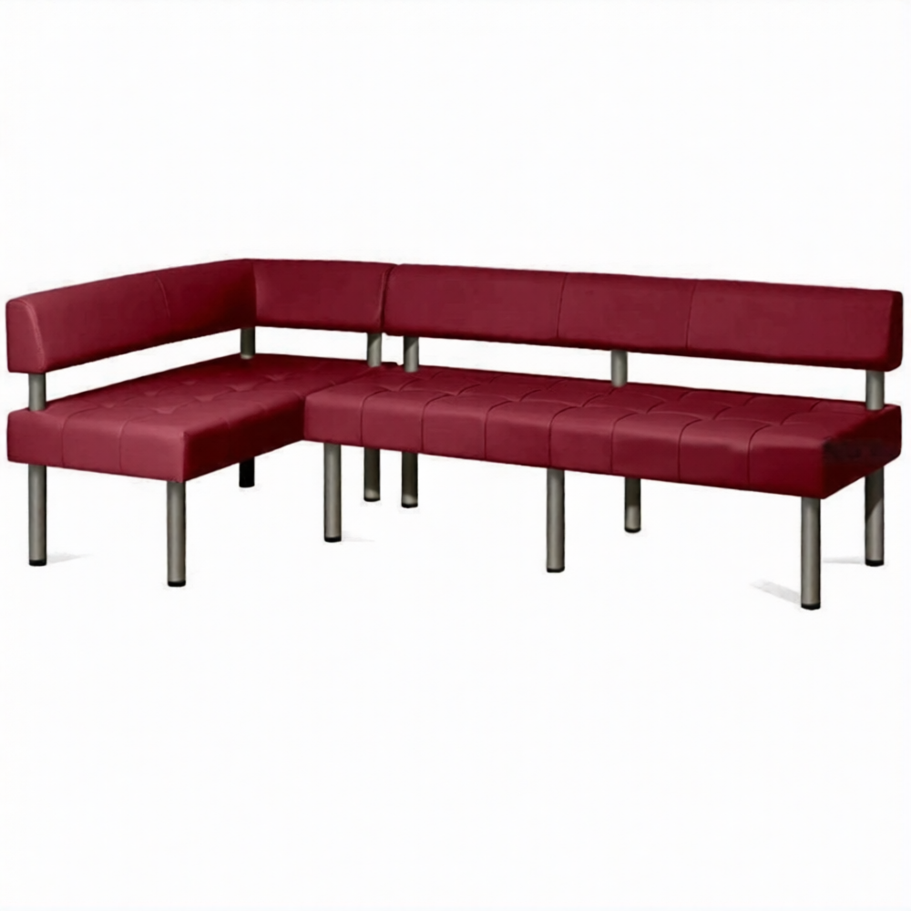 Обивка изготовлена из высококачественного кожзаменителя, устойчивого к загрязнениям и механическому воздействию. Это идеальное решение для общественных мест с большим потоком посетителей. Толщина сиденья составляет 170 мм с декоративной простежкой, что придает изделию элегантный внешний вид. Прямоугольная спинка закреплена на хромированных опорах, придавая конструкции надежность и устойчивость. Мебель поставляется в полностью собранном виде, что облегчает установку и сокращает затраты времени на монтаж.