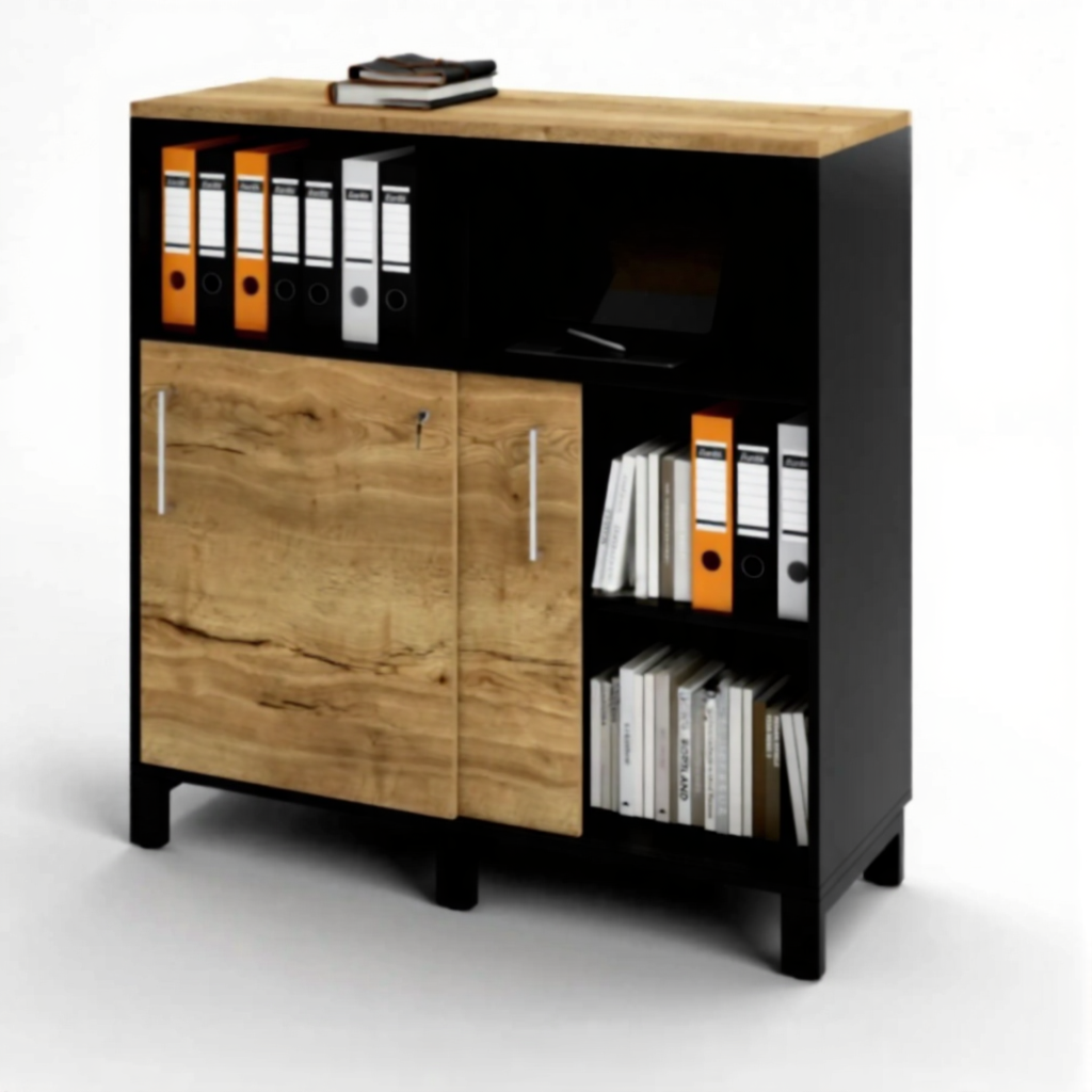 Шкаф для документов ШД-25 без замка (ЛДСП дуб вотан, каркас черный)