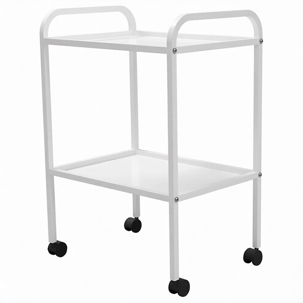 Стол медицинский инструментальный СМИ-02 (полки металл, колёса серая резина) предназначен для размещения инструмента, лекарственных препаратов и приборов.