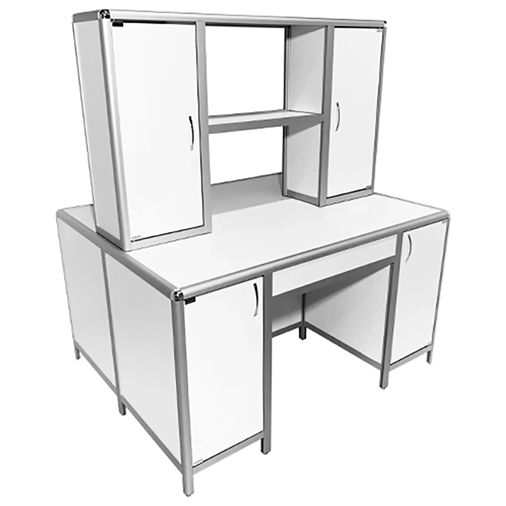 Стол лабораторный островной MED 11.003al с надстройкой (белый)