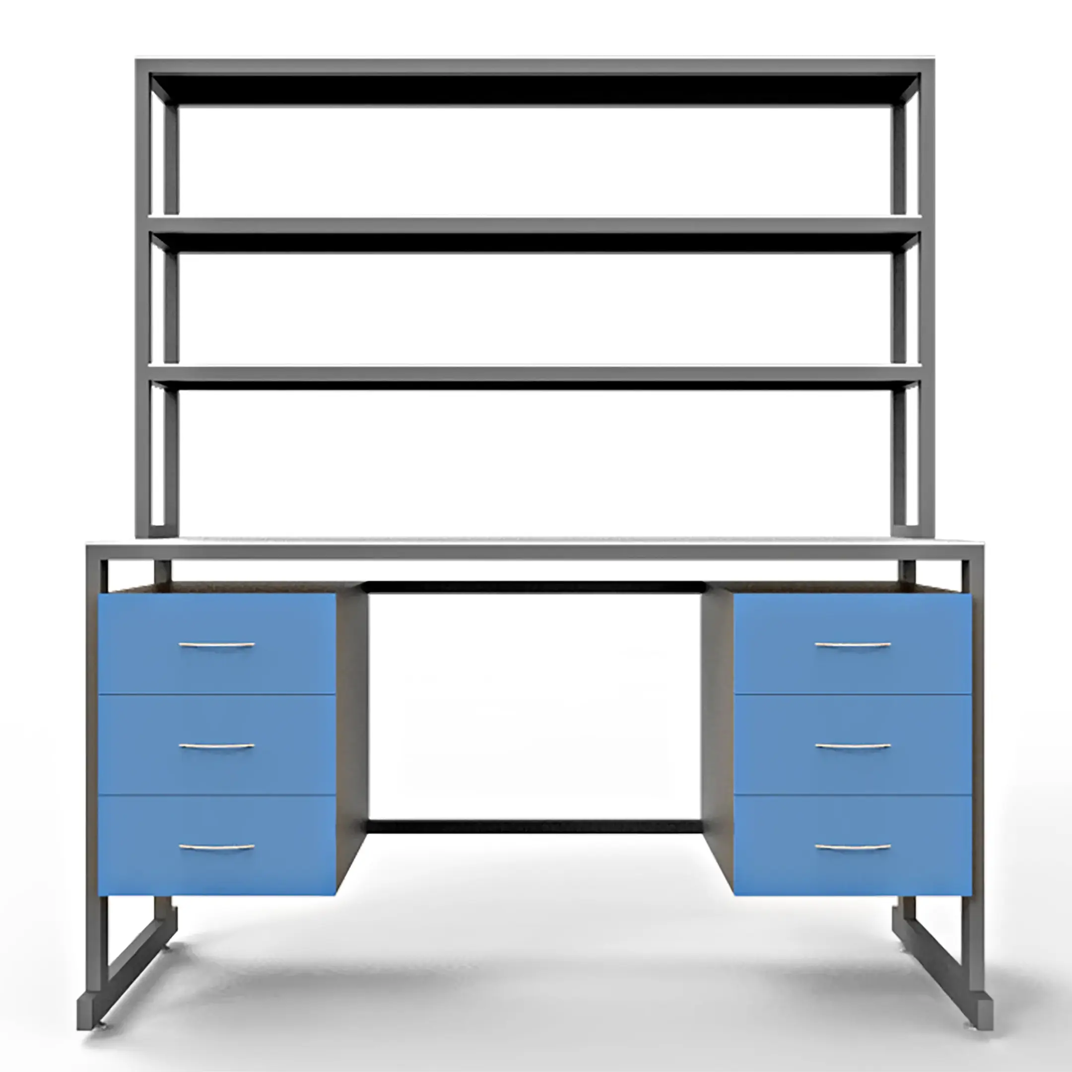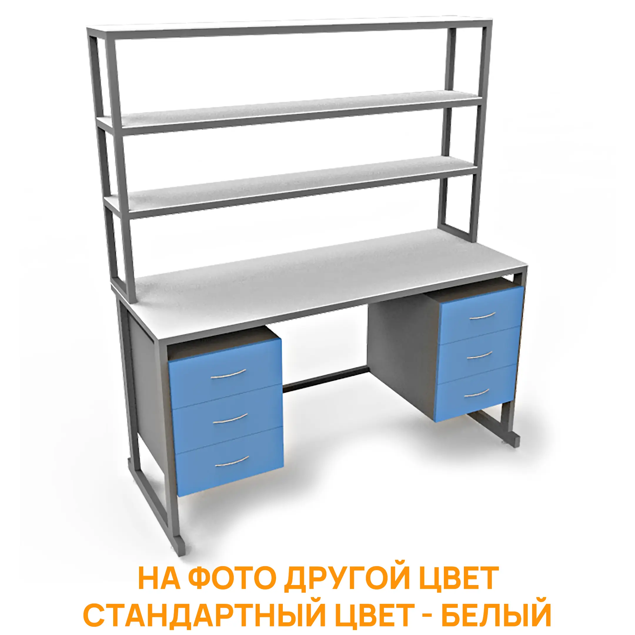 - Функциональная надстройка — три полки для дополнительного размещения оборудования и материалов, общая высота стола с надстройкой 1850 мм.