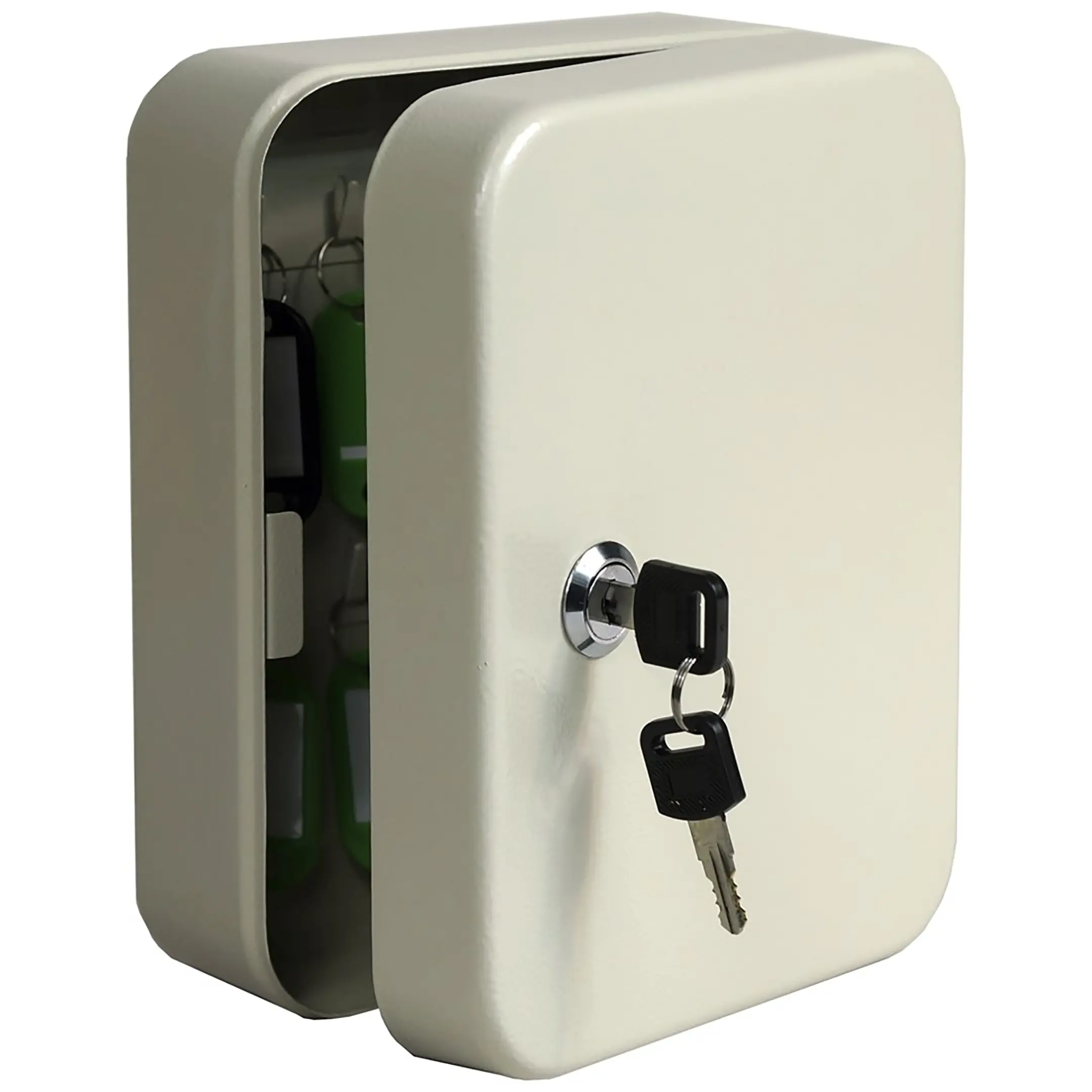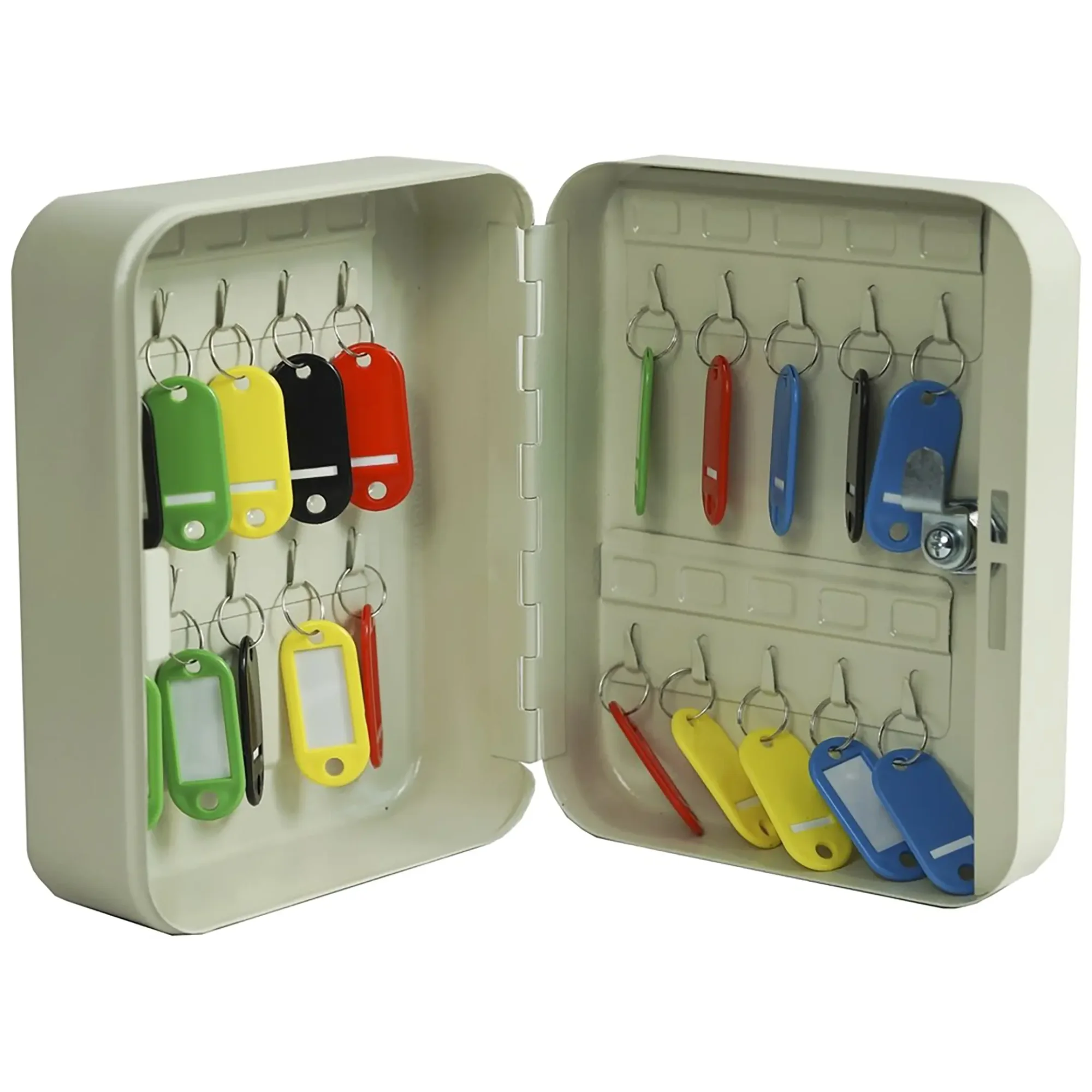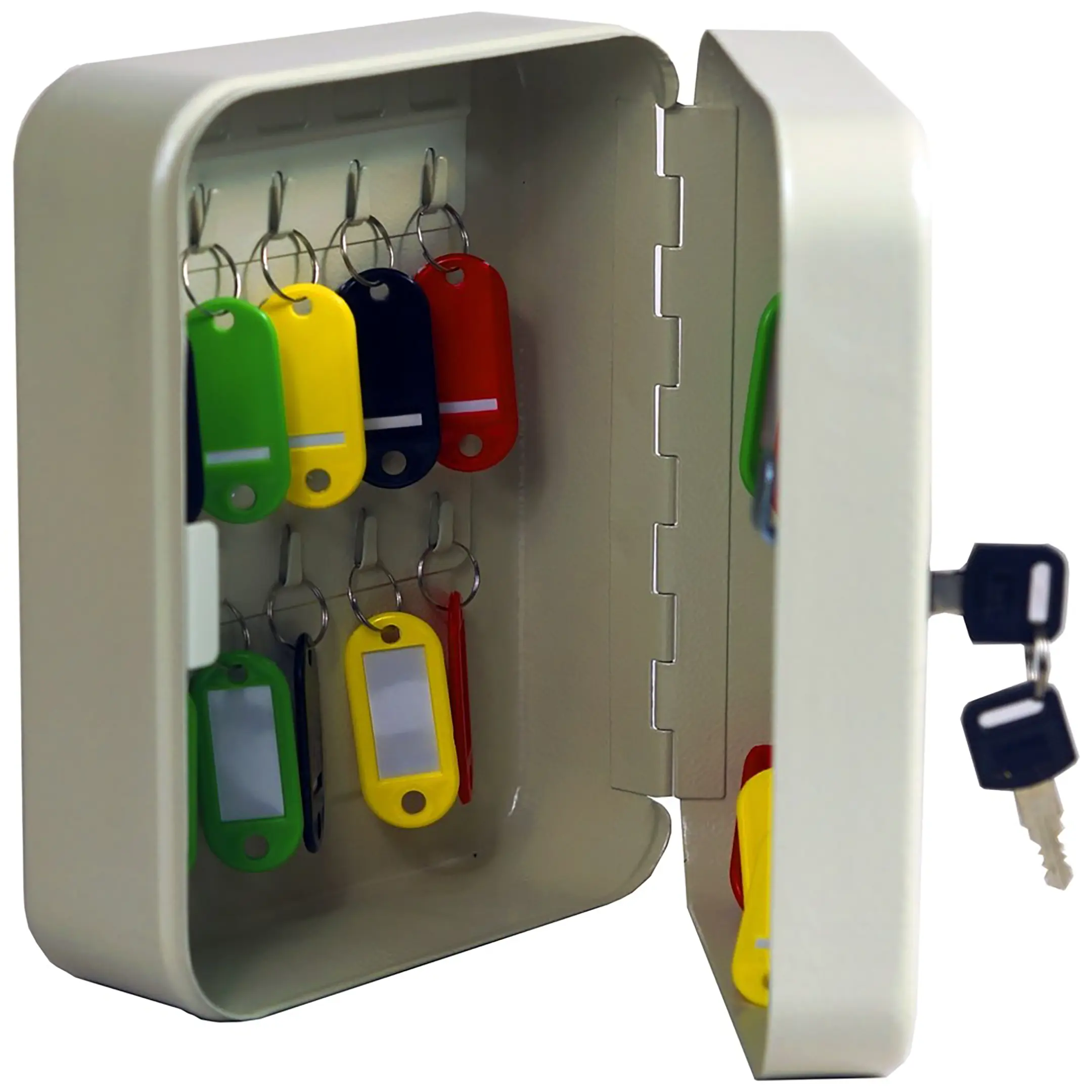 - Простота установки и удобство эксплуатации — модель предназначена для легкого настенного монтажа. Удобное расположение ячеек и комплектные брелки делают процесс снятия и возврата ключей быстрым и интуитивно понятным для любого сотрудника, что повышает общую эффективность работы.