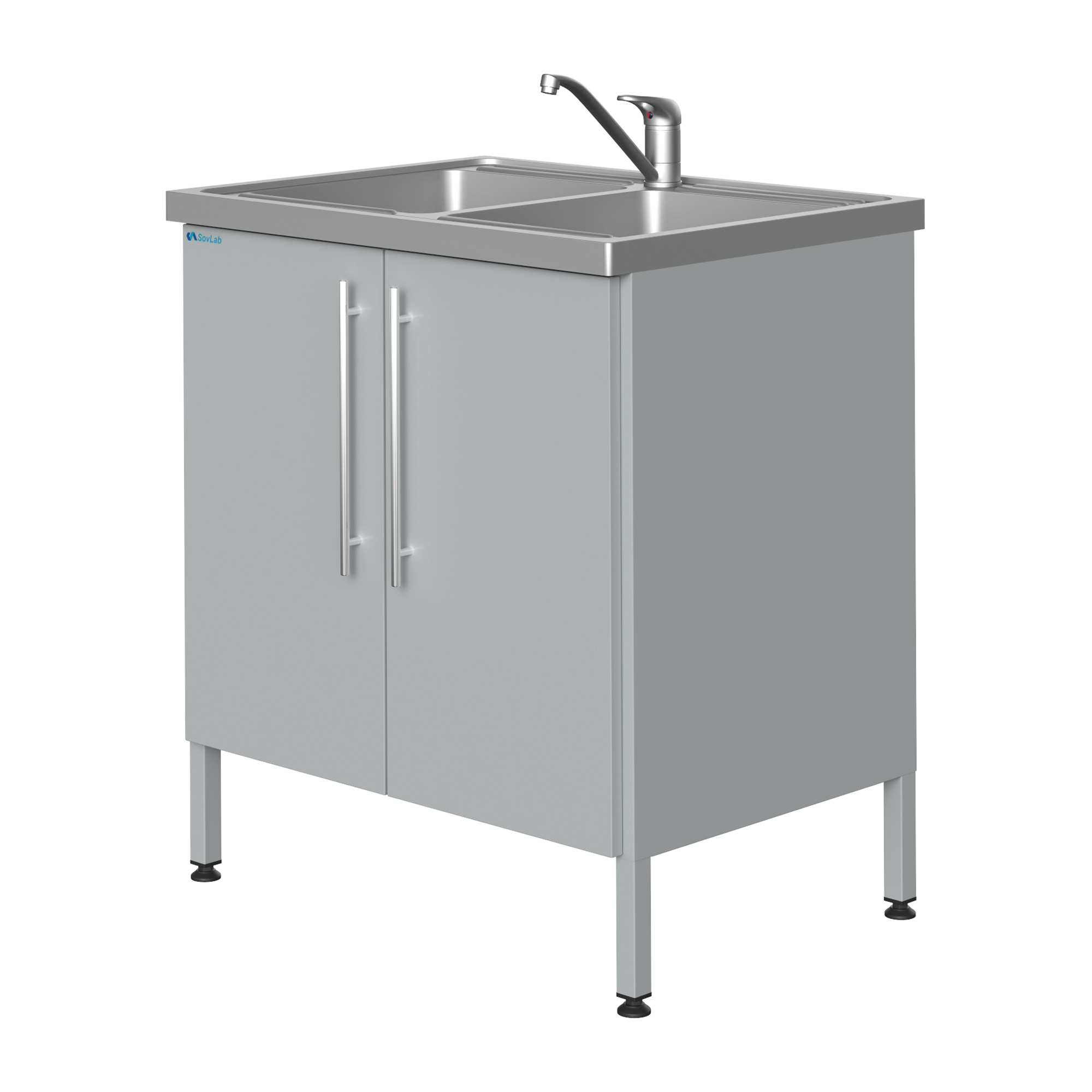 Стол-мойка Mod. 800 НЖ-2 — это компактное специализированное лабораторное оборудование, предназначенное для качественной и безопасной мойки лабораторной посуды, приборов и инструментов. Модель оснащена двумя цельнометаллическими накладными чашами из нержавеющей стали, смесителем и всей необходимой арматурой для подключения к инженерным сетям. Прочный металлический каркас установлен на регулируемые опоры, позволяющие выставить строго горизонтальное положение.