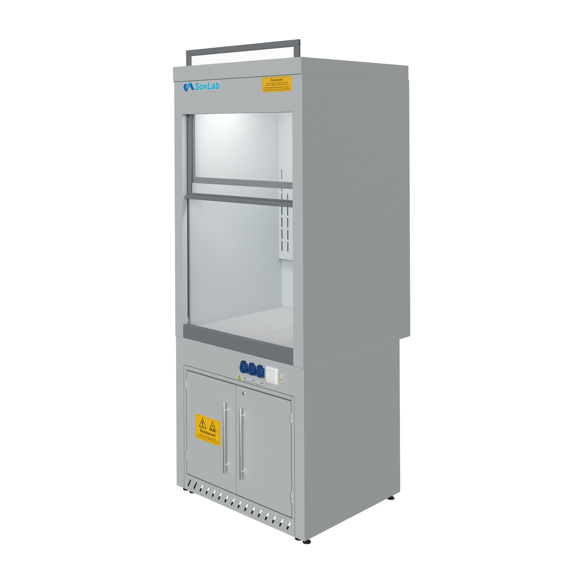 - Защитный экран — подъёмная защитная панель обеспечивает безопасный доступ к рабочей зоне при выполнении лабораторных операций.