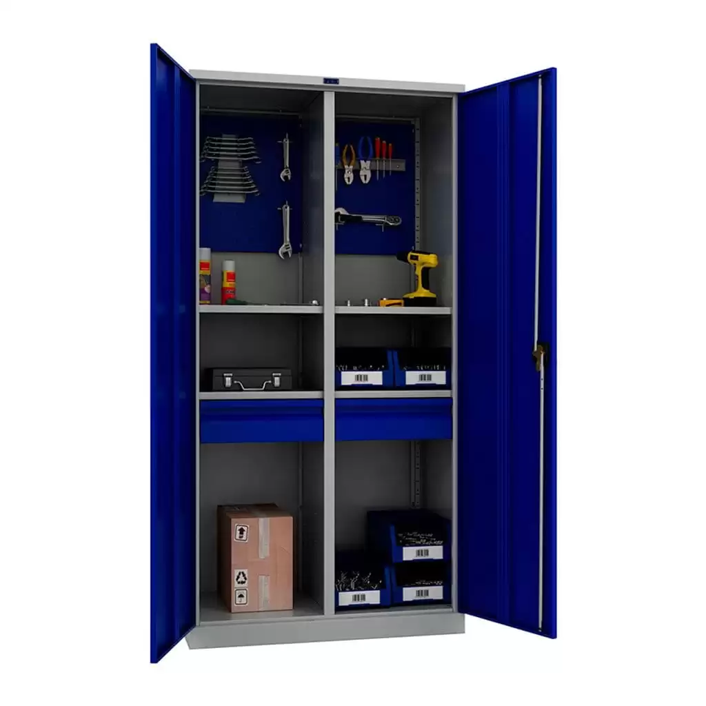 - Промышленная прочность и износостойкость — шкаф изготовлен из качественной стали с прочным порошковым покрытием, устойчивым к ударам, царапинам, воздействию масел, технических жидкостей и интенсивной эксплуатации.