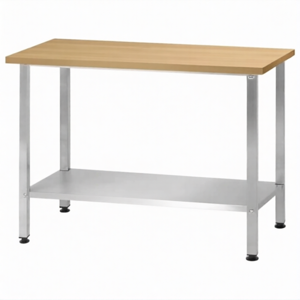 Стол кондитерский СПРн 860х1500х600 «Norma Inox» бук/40 (полка сплошная; ножка проф., тр. 40х40)
