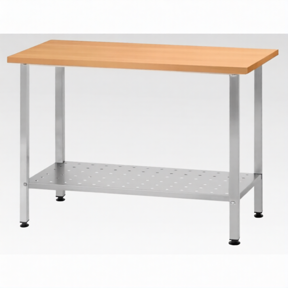 Стол кондитерский СПРн 860х1500х800 «Norma Ral» бук/40 (полка перф.; ножка проф., тр. 40х40)