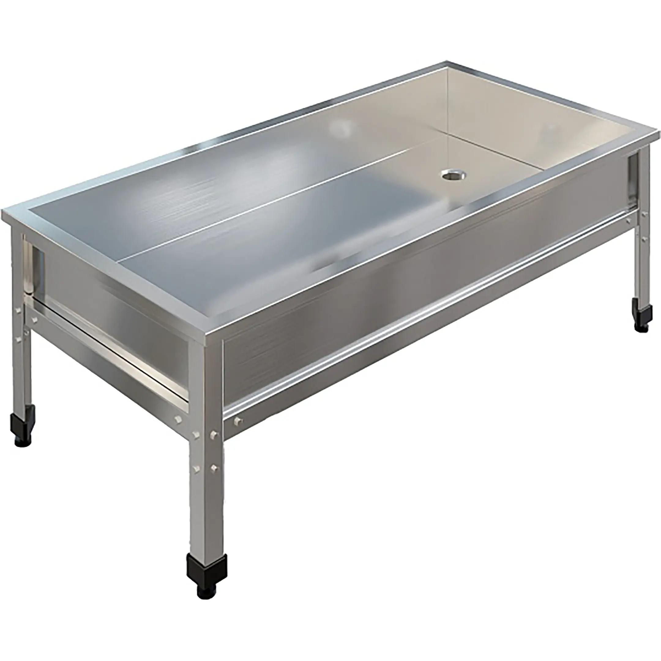 Ванна моечная низкая ВМСН-10/6/4-ЭЦ разработана для применения в производственных и моечных отделениях предприятий общепита и торговли различного формата, пищевых производств и пищеблоков для мытья и дезинфекции уборочного инвентаря, посуды и кухонных принадлежностей.