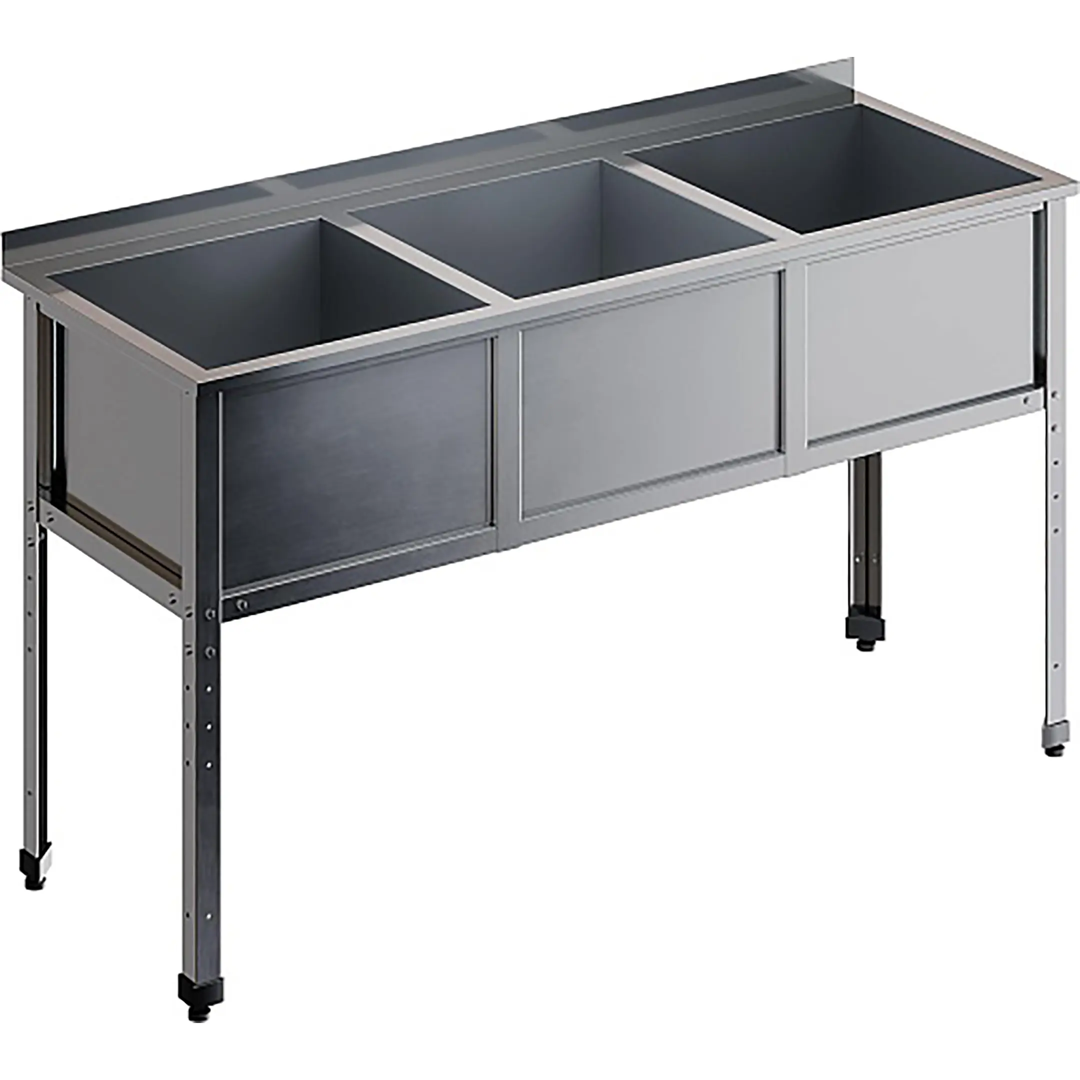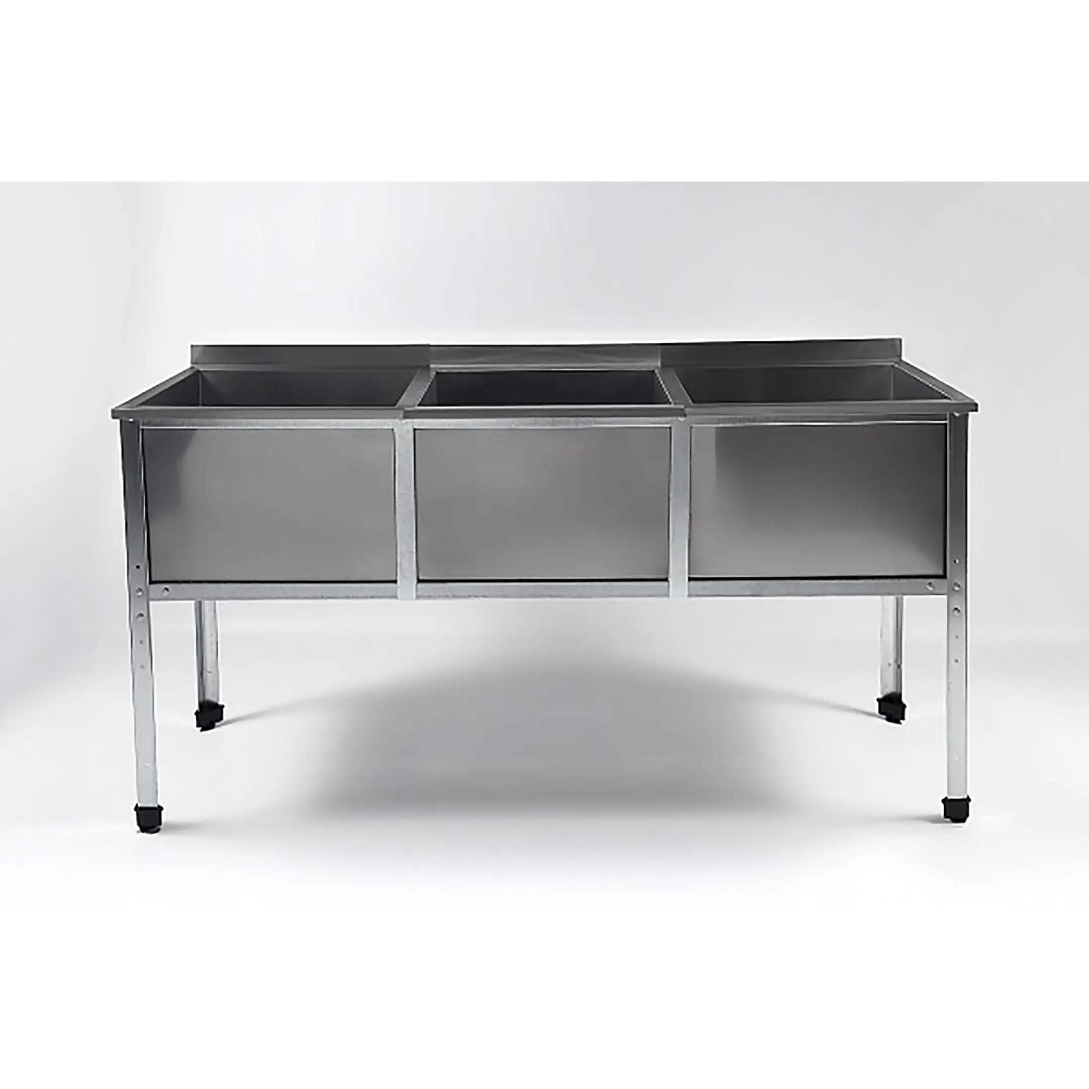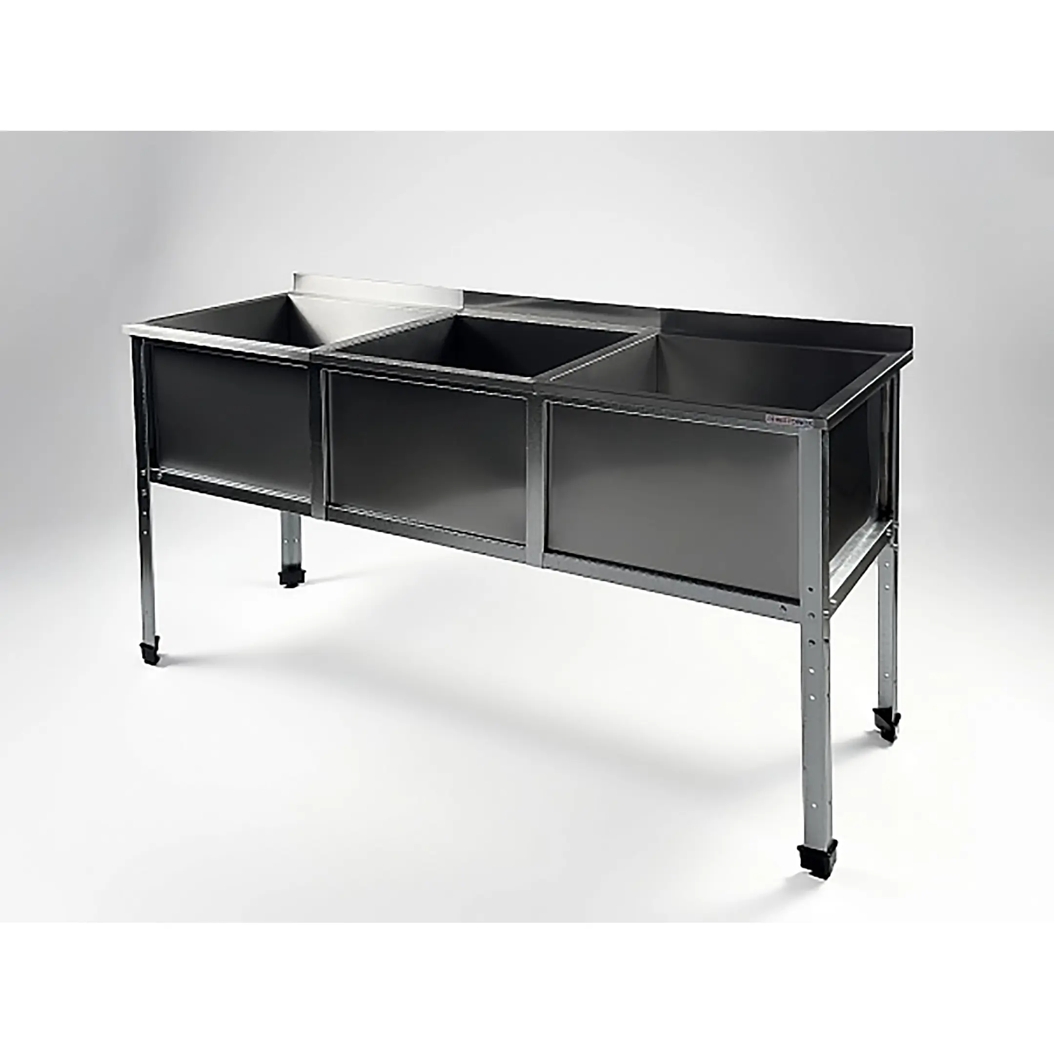 Ванна моечная трехсекционная с бортом ВМС-3/5-Б-ЭК разработана для применения в моечных отделениях предприятий общепита и торговли различного формата, пищевых производств и пищеблоков для мытья посуды, кухонного инвентаря, продуктов питания и рук персонала.