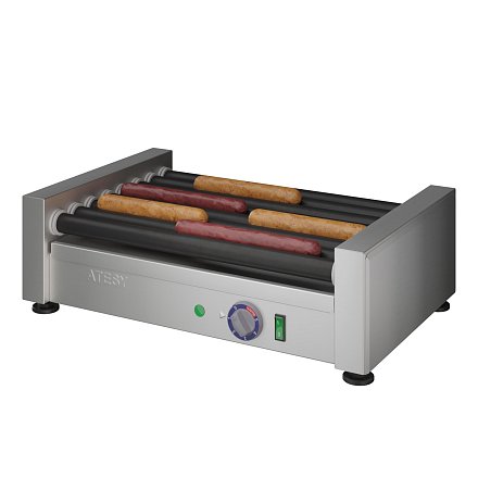 - Ролики из черной стали с антипригарным покрытием — позволяют легко снимать сосиски с роликов, а также готовить сосиски без оболочки.