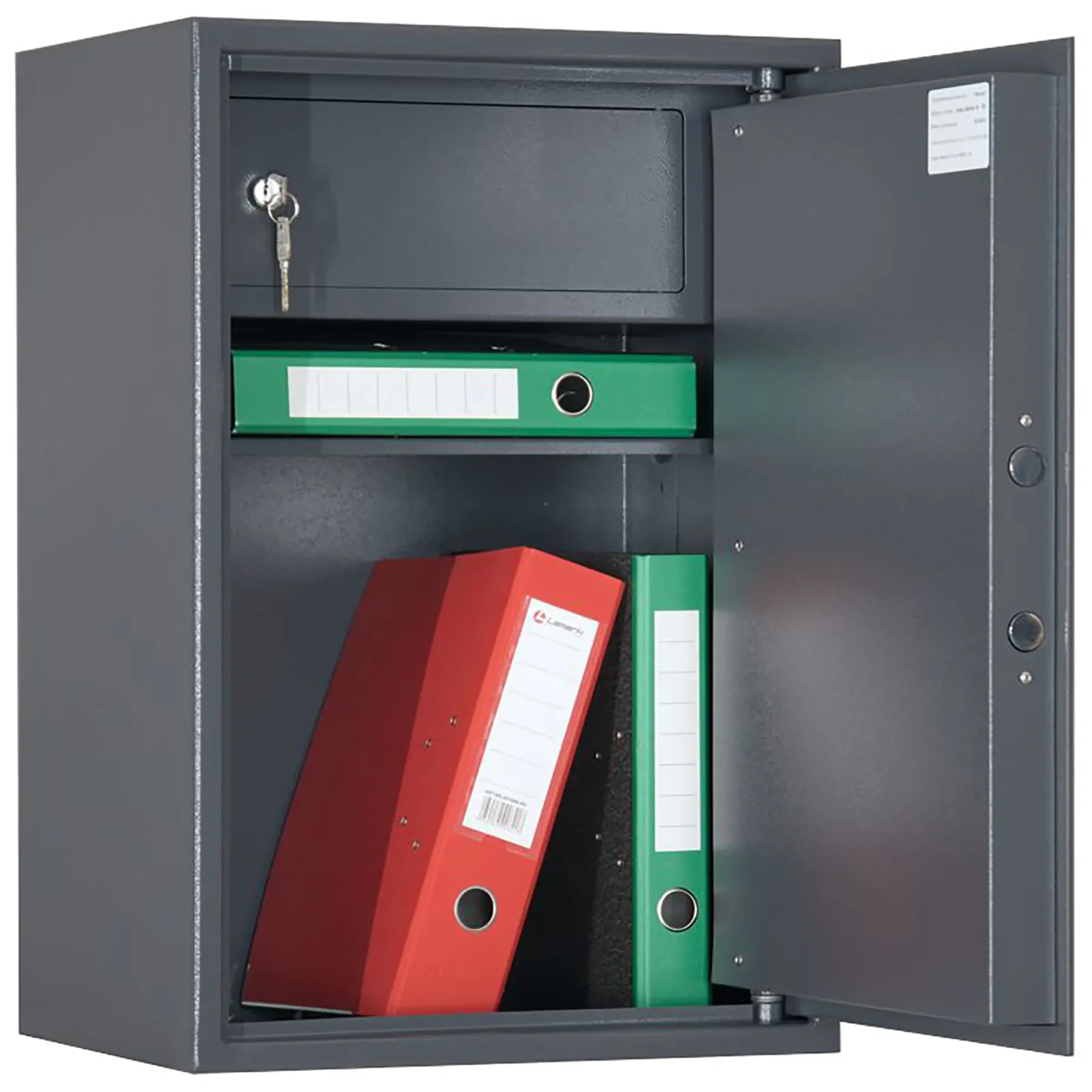 • Сейф односекционный, оснащен одной съемной полкой и трейзером.