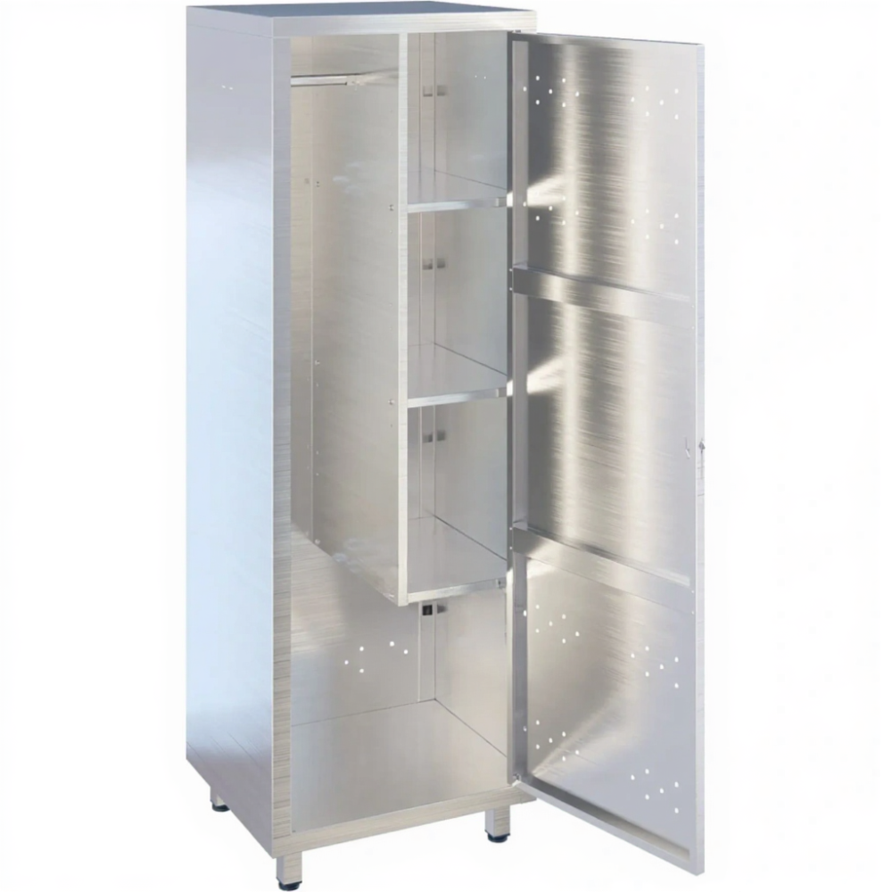 - Поддержание санитарного состояния помещений — централизованное хранение всего уборочного инвентаря в одном закрывающемся шкафу способствует соблюдению санитарно-гигиенических норм, предотвращает распространение пыли и грязи, а также обеспечивает эстетичный вид подсобных зон.