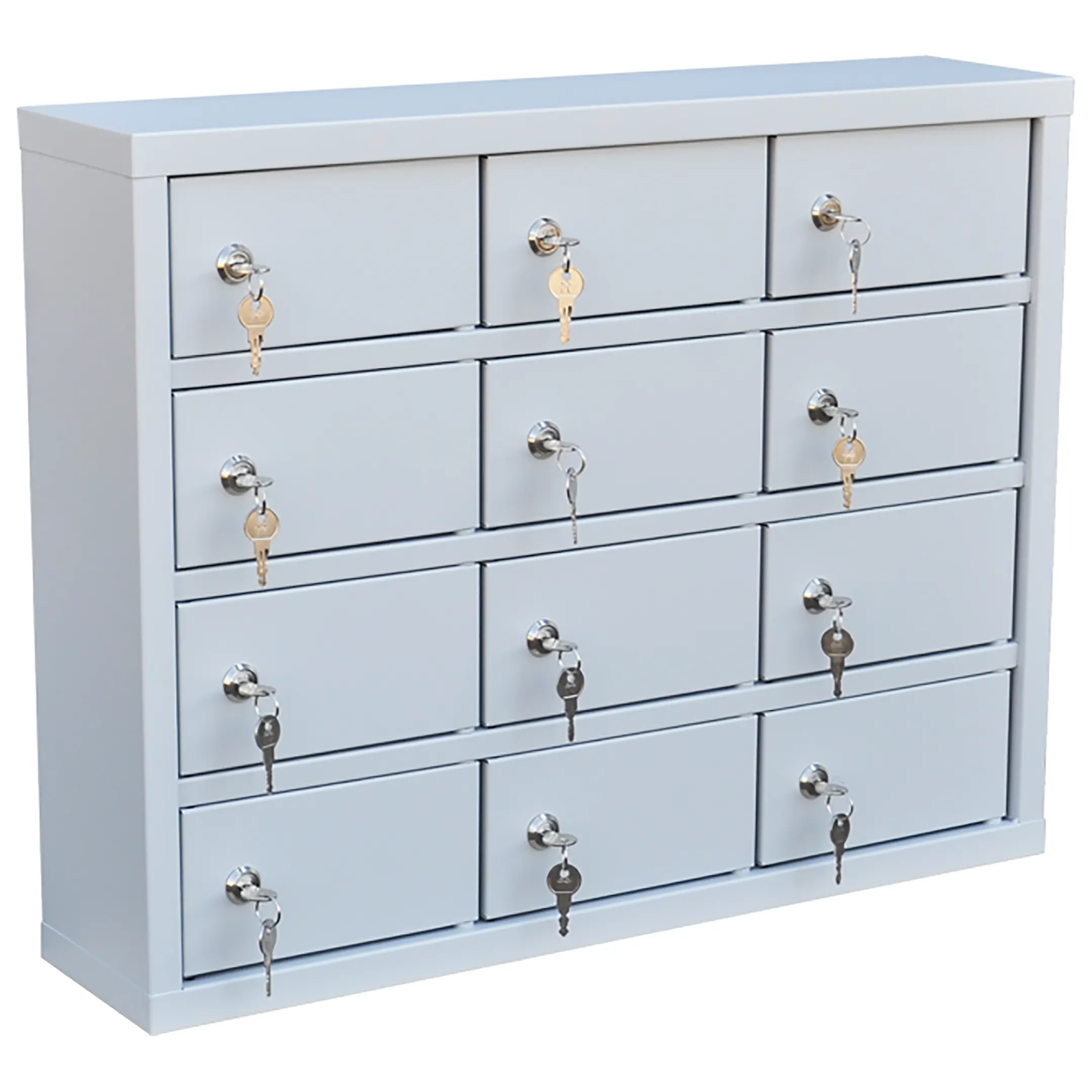 - Компактные размеры и базовая вместимость — шкаф предоставляет 12 индивидуальных запирающихся ячеек, что оптимально для малых коллективов, таких как группа продленного дня, отдел из нескольких сотрудников или спортивная секция. Его небольшие габариты позволяют легко разместить оборудование на столе, полке или тумбе, не занимая много места.