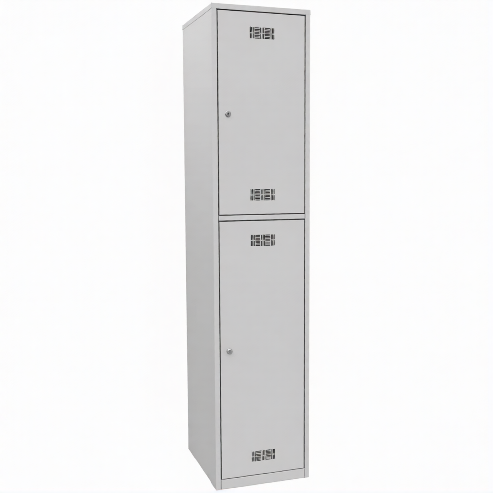 - Шкаф металлический для хранения одежды и обуви на 2 отделения с полками под обувь. Состоит из двух секций.