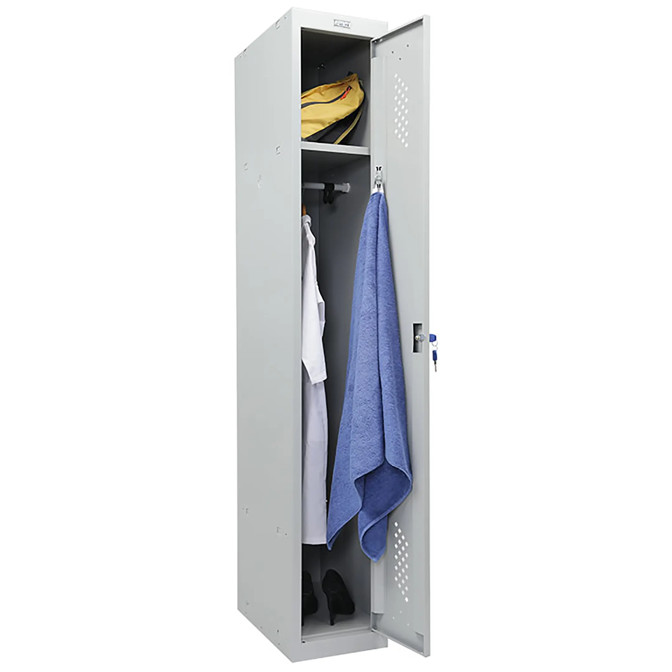 Шкаф для раздевалки ML 11-30 предназначен для хранения одежды в производственных, спортивных и других помещениях, хоз.инвентаря, а также для организации камер хранения.
