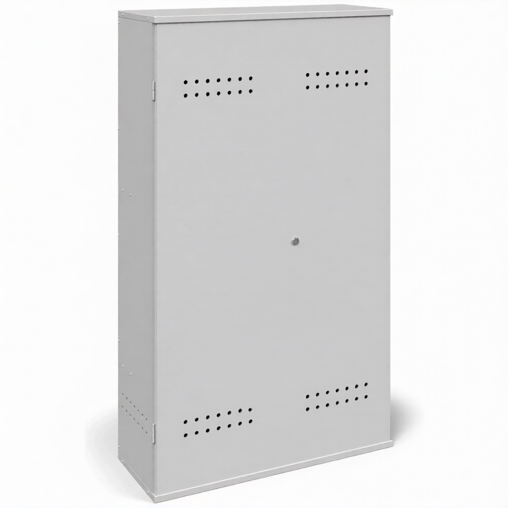 - Обеспечение базового уровня пожарной безопасности — металлический корпус, даже толщиной 0,8 мм, создает физический барьер между баллонами и возможными источниками огня или искр (например, от болгарки). Наличие вентиляционных отверстий обеспечивает необходимый воздухообмен для предотвращения скопления газа, что является главным приоритетом согласно простейшим правилам безопасной эксплуатации.