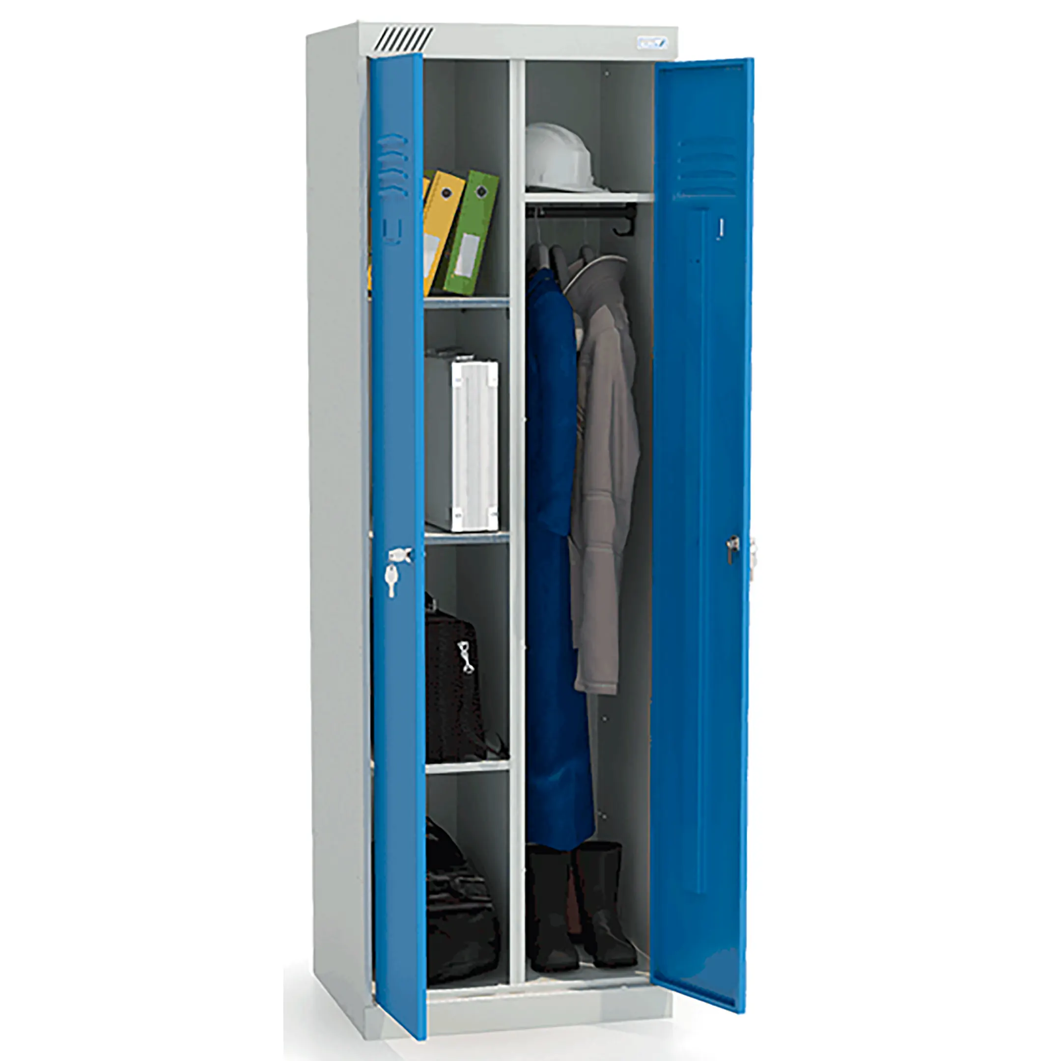 - Многофункциональность и универсальность применения — шкаф может использоваться для хранения самого разнообразного содержимого: от уборочного инвентаря и моющих средств до рабочей одежды, инструментов, учебных материалов и спортивного оборудования, адаптируясь под конкретные задачи организации.